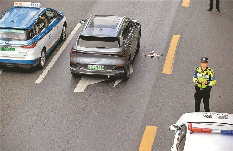 福田大隊機訓中隊副中隊長李海峰告訴記者,無人機實時對違法行為進行抓拍取證,快速準確定位。路面警力即刻響應、快速攔截查處,大幅提升了執(zhí)法效率。即使現(xiàn)場沒有及時攔截住違法車輛,通過無人機執(zhí)法抓拍的整段視頻也可以完整展現(xiàn)違法過程,后續(xù)進行調(diào)查處理。“深南大道屬于二級限行區(qū),違規(guī)駛?cè)朐撀范蔚?,我們依法按沖禁令進行處罰并查扣車輛?!崩詈7逭f。
