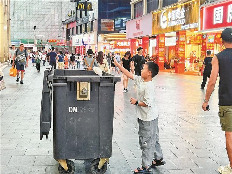 如此龐大的客流量,卻沒有讓街區(qū)變得雜亂無章,街道依舊干凈整潔。這離不開環(huán)衛(wèi)工人的辛勤付出,王阿姨便是其中的代表。假期五天,她持續(xù)作業(yè),不僅要處理日益增多的垃圾和紙箱等廢棄物,還被調(diào)派至人流密集區(qū)域加強保潔力度。“最忙的時候是下午4點到6點,我們得保證垃圾不落地?!蓖醢⒁踢吳謇韽U棄飲料瓶邊告訴記者。
