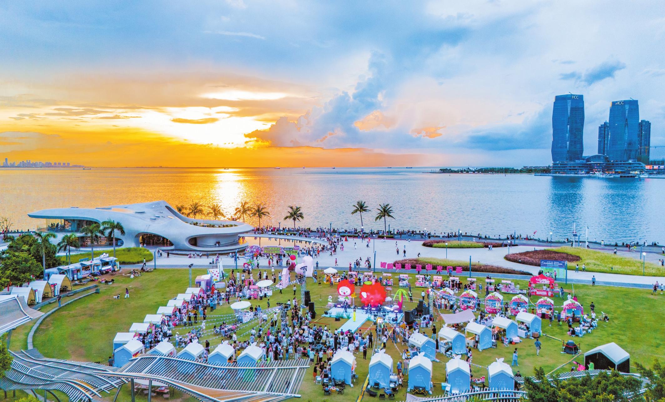 文化浸潤(rùn),以精神豐盈塑造城市品格。華燈初上,世紀(jì)海角文化商業(yè)街區(qū)的霓虹與晚霞交相輝映。手工藝人展示黎錦編織技藝,街頭樂(lè)隊(duì)奏響海南民歌,游客舉著“老爸茶”奶茶打卡拍照——這條2023年開業(yè)的特色街區(qū),已成為海口夜經(jīng)濟(jì)的“流量擔(dān)當(dāng)”。