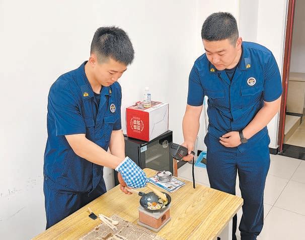消防員現(xiàn)場做實(shí)驗(yàn)。