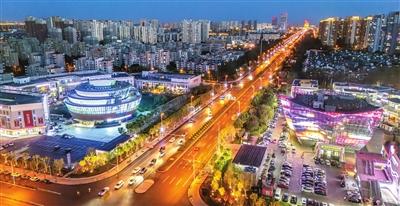 夜幕降臨,天津市友誼路沿線燈火璀璨,水晶宮飯店、津誼橋、蓮花酒店等地標建筑披上絢麗的光影外衣。