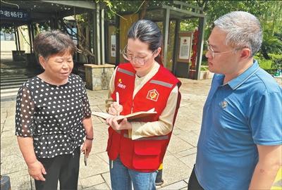 浙江省寧波市鎮(zhèn)海區(qū)莊市街道網(wǎng)格員劉紅(中)到社區(qū)了解民情。王婧 攝