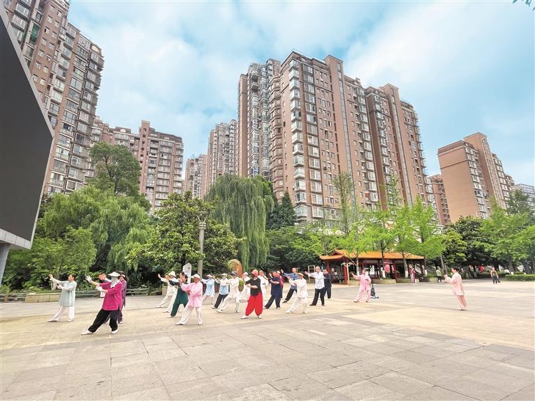 金元社區(qū)太極班學員早起練太極。 劉娟 攝