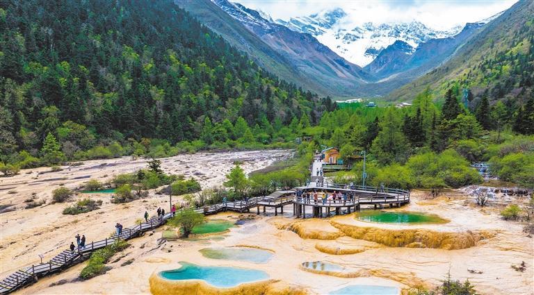 6月10日,四川省阿壩州松潘縣黃龍風(fēng)景區(qū),游客在觀賞鈣華地貌景觀。黃勝林?jǐn)z(中經(jīng)視覺)