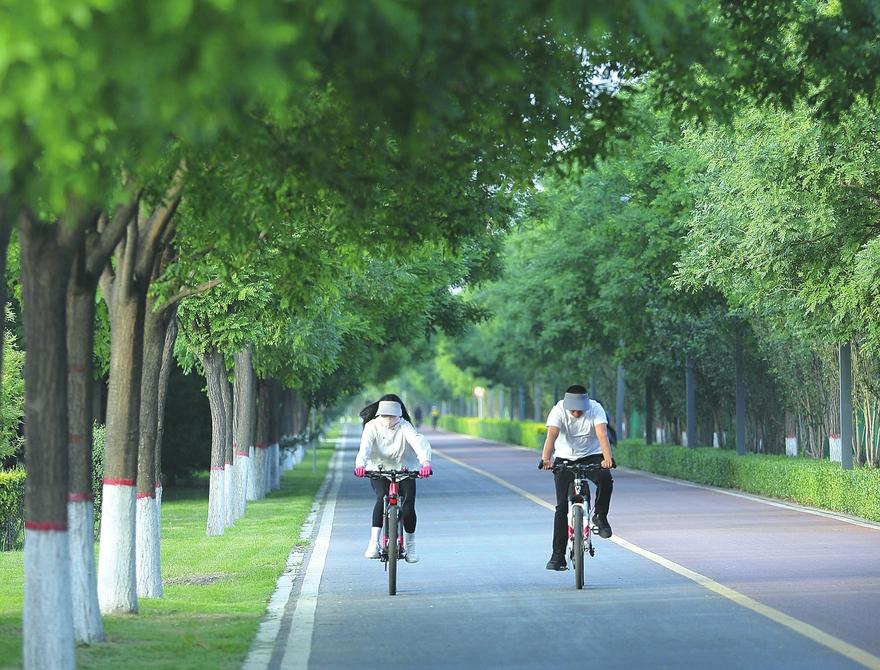 6月22日,太原濱河自行車(chē)專(zhuān)用道碧樹(shù)成蔭,市民騎行穿梭其間,盡享愜意時(shí)光,成為夏日里亮麗的城市風(fēng)景線。記者 王瑞瑞 攝