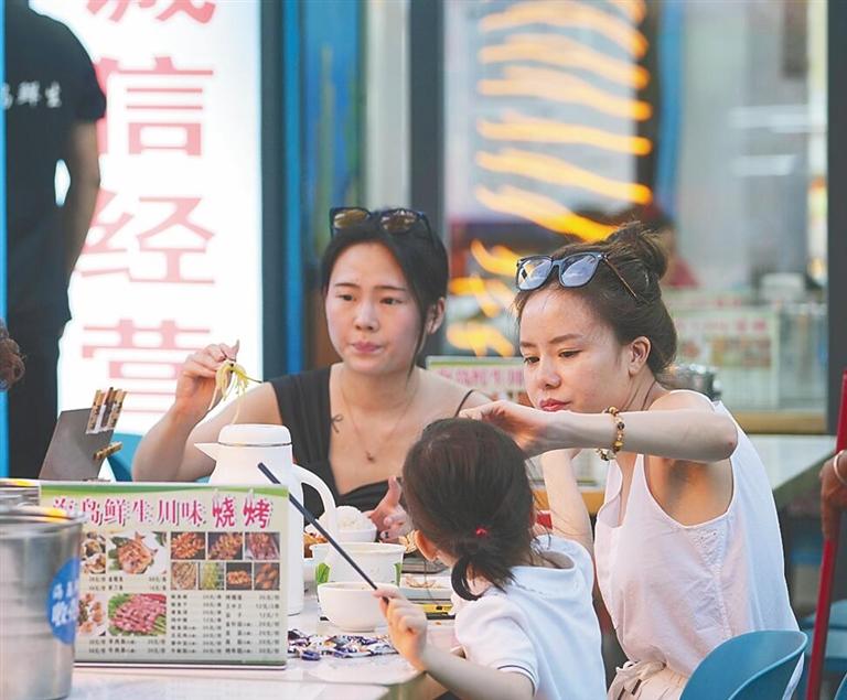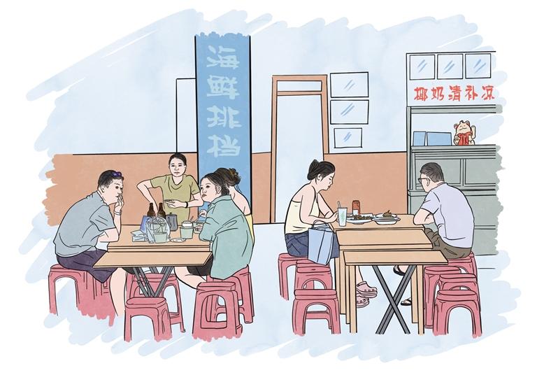 “允許外擺后,我們專門在店外擺上了桌子。外擺區(qū)環(huán)境好了,顧客自然愿意多坐一會?!焙u鮮生店鋪老板呂旭兵說。今年4月,三亞市天涯區(qū)在全省率先探索實施商戶臨時外擺政策,他成為首批受益者。
