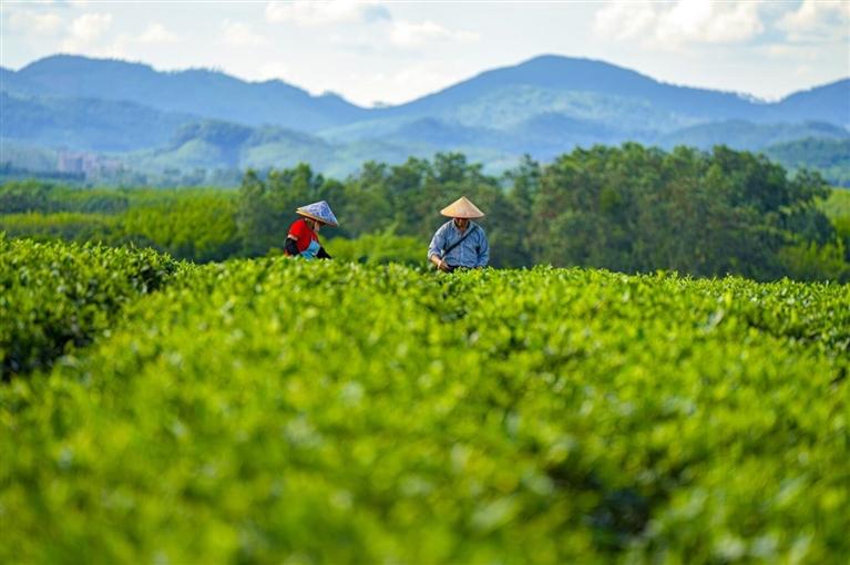 晨霧中的白沙黎族自治縣萬(wàn)畝茶園,茶香氤氳,綠美宜人,熱帶雨林的生態(tài)綠韻,溪流映著蝶影,仿佛步入一幅生動(dòng)的山水畫卷。