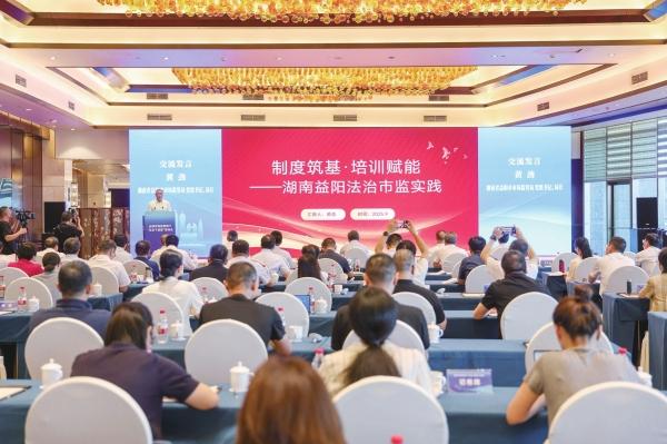 益陽(yáng)市市場(chǎng)監(jiān)督管理局負(fù)責(zé)人在國(guó)家市場(chǎng)監(jiān)督管理總局“法治下基層”現(xiàn)場(chǎng)會(huì)上分享經(jīng)驗(yàn)。(本文圖片均由益陽(yáng)市市場(chǎng)監(jiān)督管理局提供)
