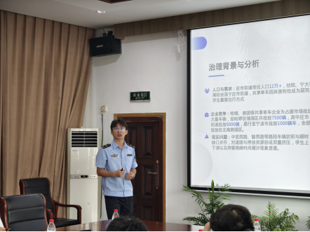 “目前,莊市是鎮(zhèn)海區(qū)內(nèi)共享單車投放數(shù)量最多的轄區(qū),我們面對(duì)單車‘圍城’問(wèn)題,堅(jiān)持服務(wù)優(yōu)先、包容審慎、協(xié)同共治、數(shù)字賦能的原則,通過(guò)‘人防+技防+法治’打出了一套治理組合拳?!鼻f市中隊(duì)作為本期主講單位,通過(guò)治理前后對(duì)比案例,一張張數(shù)據(jù)圖表,分享了在共享單車治理方面的工作經(jīng)驗(yàn)和創(chuàng)新舉措,清晰呈現(xiàn)了治理路徑與工作成效,量化投放、校企共治、志愿聯(lián)盟等具體做法引發(fā)了在場(chǎng)同仁的濃厚興趣。