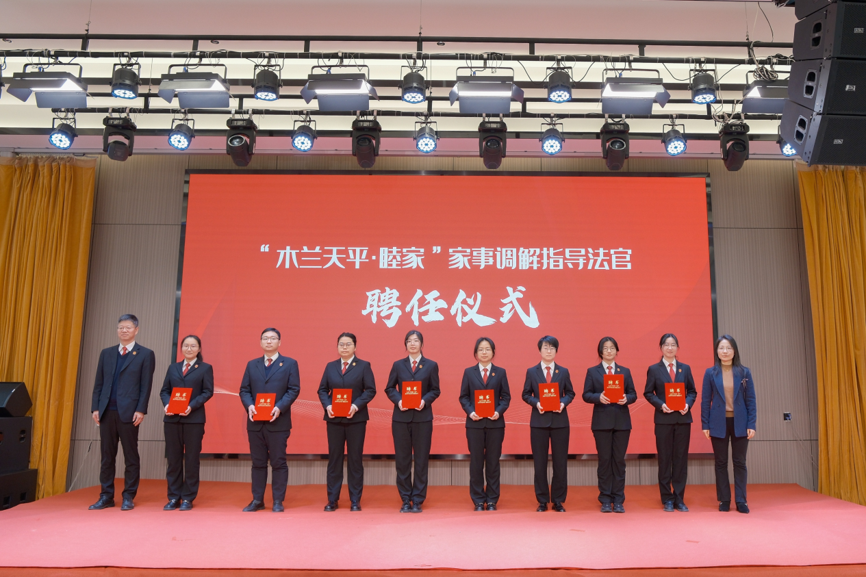 圖為“木蘭天平·睦家”家事調(diào)解指導(dǎo)法官聘任儀式