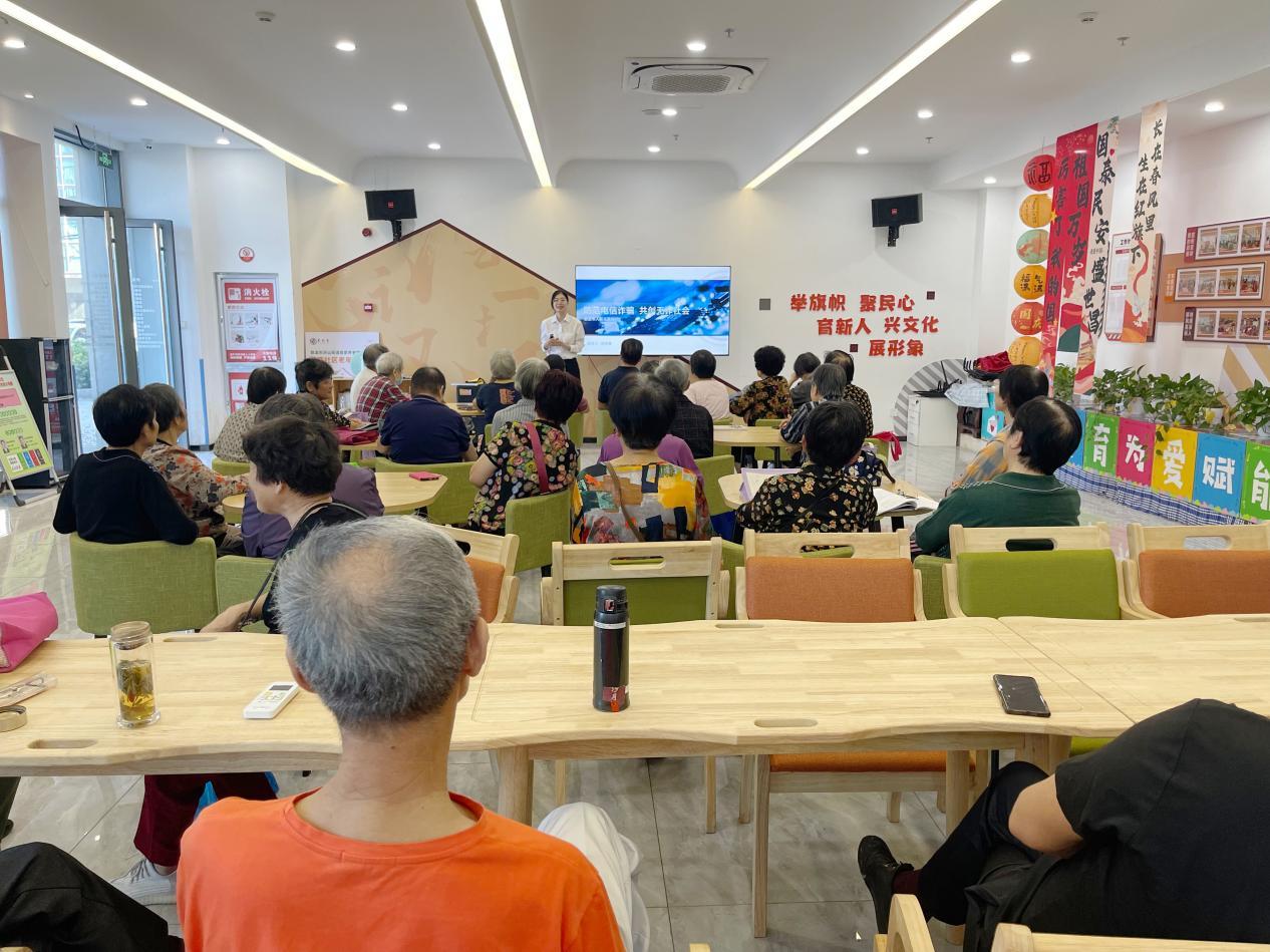 圖為慈溪市法院網(wǎng)格法官在滸西社區(qū)開展“防范電信詐騙 共創(chuàng)無詐社會”法治宣講活動