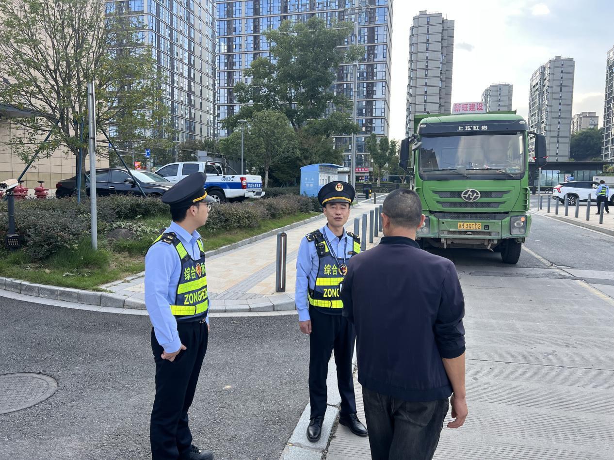 “請(qǐng)靠邊停車(chē),接受檢查?!?0月23日下午3點(diǎn),在浙江省寧波市奉化區(qū)南山路一處聯(lián)合檢查點(diǎn),一輛滿載的工程車(chē)被執(zhí)法人員揮手引導(dǎo)至路邊。經(jīng)現(xiàn)場(chǎng)查驗(yàn),該車(chē)輛雖已辦理渣土運(yùn)輸許可,但其車(chē)輪與車(chē)體均沾帶大量黃泥,未徹底清洗即駛?cè)氤鞘兄鞲傻?,存在明顯的路面污染風(fēng)險(xiǎn)。執(zhí)法人員依據(jù)《寧波市建筑垃圾管理?xiàng)l例》相關(guān)規(guī)定,當(dāng)場(chǎng)對(duì)車(chē)輛進(jìn)行處置,并對(duì)駕駛員開(kāi)展宣傳教育,督促運(yùn)輸單位嚴(yán)格落實(shí)出場(chǎng)清洗與運(yùn)輸過(guò)程中的密封防漏措施。