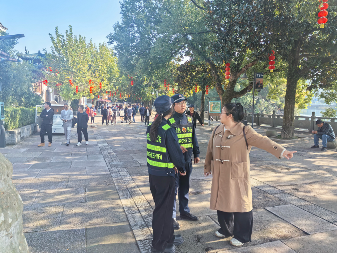 針對(duì)預(yù)判到的秋假旅游高峰,執(zhí)法隊(duì)提前部署、周密安排,制定專項(xiàng)保障方案。通過(guò)增派執(zhí)法力量,在景區(qū)主要入口、停車場(chǎng)、熱門景點(diǎn)及商業(yè)街區(qū)等重點(diǎn)區(qū)域?qū)嵭小岸c(diǎn)值守+機(jī)動(dòng)巡查”相結(jié)合的模式,實(shí)現(xiàn)管理全覆蓋、響應(yīng)無(wú)延遲。同時(shí),加強(qiáng)與公安、交警等部門的聯(lián)動(dòng)協(xié)作,構(gòu)建信息互通、力量互補(bǔ)的協(xié)同機(jī)制,為應(yīng)對(duì)各類突發(fā)情況、維護(hù)游覽秩序奠定了堅(jiān)實(shí)基礎(chǔ)。