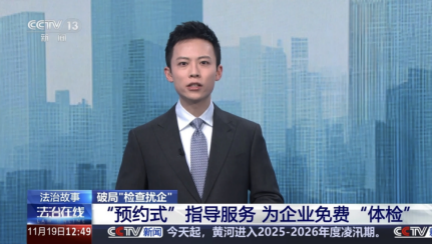 11月19日中午,CCTV13《法治在線》播出浙江省寧波市縱深推進(jìn)“大綜合一體化”行政執(zhí)法改革工作,優(yōu)化營(yíng)商環(huán)境,規(guī)范涉企行政檢查,加強(qiáng)行政檢查計(jì)劃統(tǒng)籌情況,報(bào)道了寧波市鎮(zhèn)海區(qū)九龍湖鎮(zhèn)“預(yù)約式”指導(dǎo)服務(wù)為企業(yè)免費(fèi)“體檢”的典型做法。