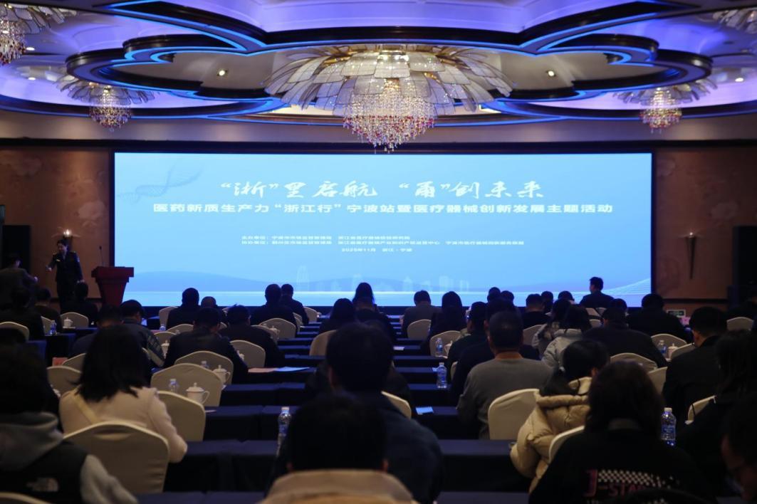 11月25日,醫(yī)藥新質(zhì)生產(chǎn)力“浙江行”寧波站暨醫(yī)療器械創(chuàng)新發(fā)展主題活動(dòng)在浙江省寧波市鄞州區(qū)舉行。本次活動(dòng)由寧波市市場監(jiān)督管理局與浙江省醫(yī)療器械檢驗(yàn)研究院聯(lián)合主辦,旨在深入貫徹落實(shí)發(fā)展新質(zhì)生產(chǎn)力和加強(qiáng)“三支隊(duì)伍”建設(shè)有關(guān)決策部署,進(jìn)一步推動(dòng)醫(yī)療器械產(chǎn)業(yè)創(chuàng)新發(fā)展。來自省、市相關(guān)部門、行業(yè)協(xié)會(huì)、醫(yī)療機(jī)構(gòu)及企業(yè)的200余位代表參加活動(dòng)。