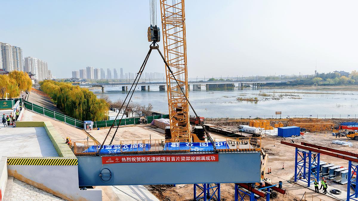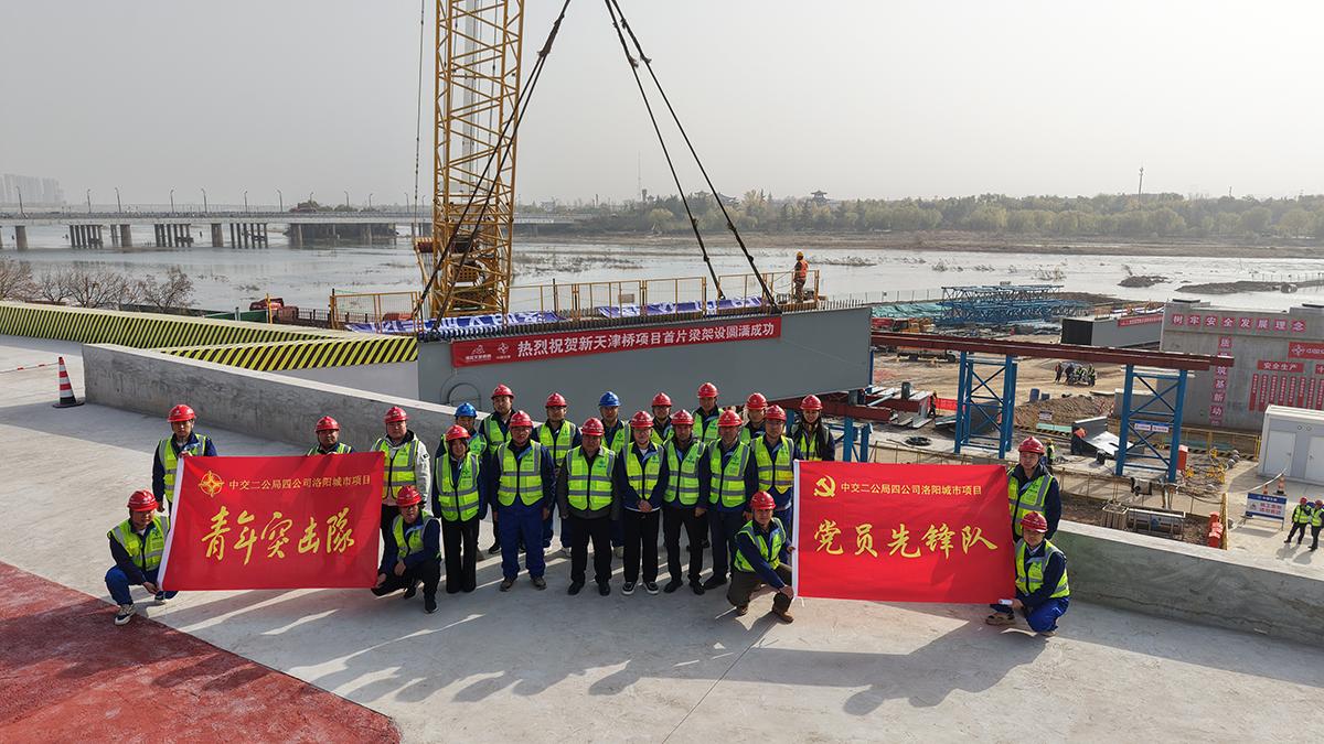 12月1日,中交二公局第四工程有限公司河南省洛陽新天津橋項目首片鋼箱梁架設作業(yè)圓滿完成。本次架設的鋼箱梁為項目U01聯(lián)A3節(jié)段17.31米邊跨邊梁,重達41.8噸,項目部選用350噸履帶吊配合吊裝,將鋼箱梁平穩(wěn)安放在高約5米的臨時墩臺支架上,標志著項目正式進入上部結構施工階段,為后續(xù)工程推進奠定堅實基礎。