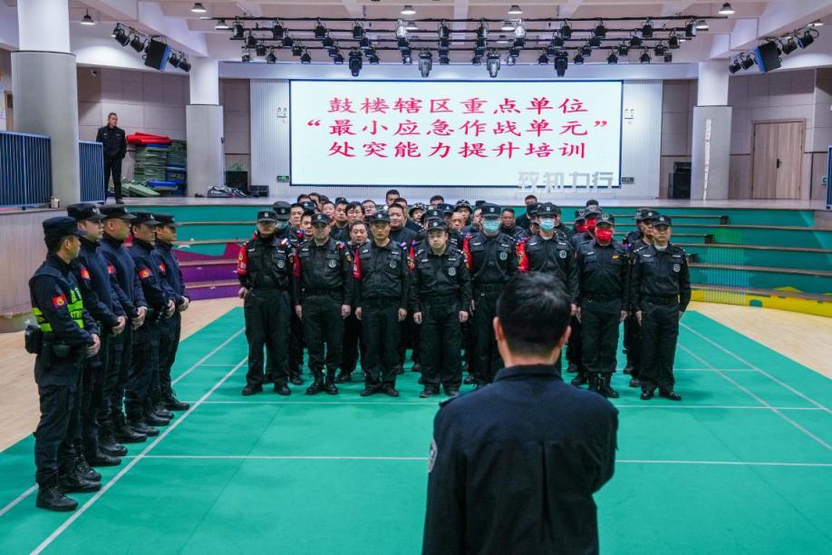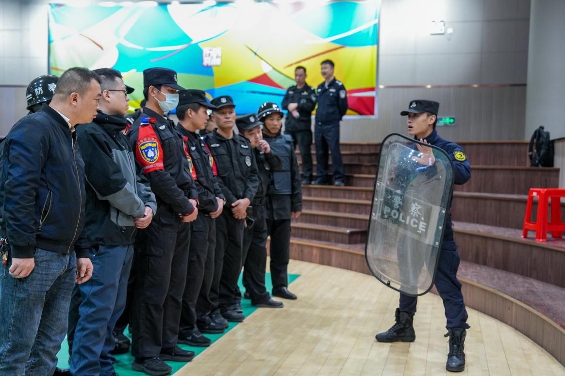 巡特警大隊的專業(yè)教官團隊從實戰(zhàn)出發(fā),圍繞安全意識強化、常用裝備規(guī)范操作、突發(fā)事件先期處置要點等核心內(nèi)容,對鼓樓轄區(qū)內(nèi)22家物業(yè)單位的70余名安保力量進行了系統(tǒng)講解與手把手的實操教學,為后續(xù)演練奠定了扎實的技能基礎。