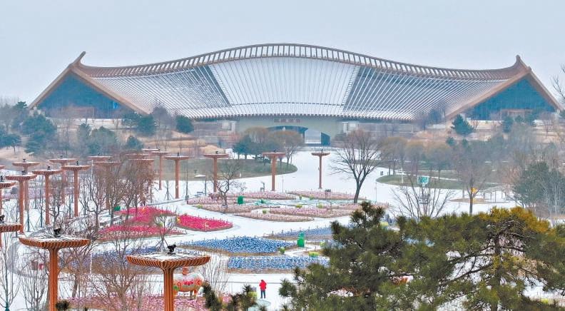 北京延慶世園公園,國風(fēng)建筑掩映在皚皚雪幕之中。記者 潘之望攝