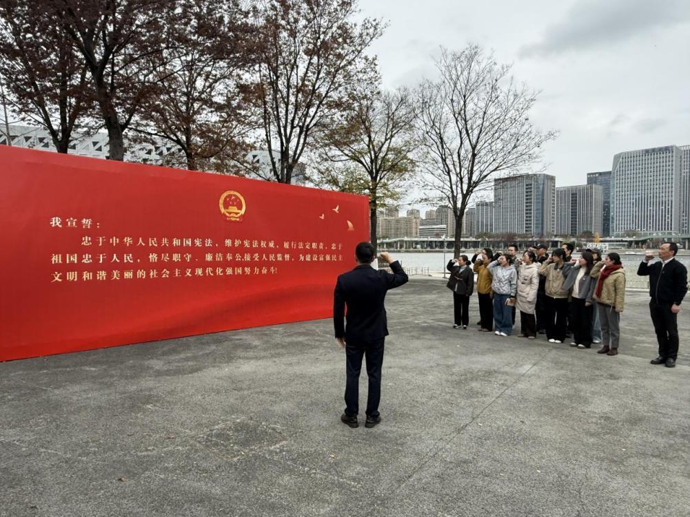 為深入學習宣傳憲法精神,推動法治文化融入城市發(fā)展肌理,近日,浙江省慈溪市自然資源和規(guī)劃局以憲法宣傳月為契機,在慈溪市城市展示館創(chuàng)新舉辦“弘揚憲法精神 共建法治慈溪”主題普法活動,通過“儀式感+沉浸式+互動性”的多元形式,讓嚴肅的憲法知識變得可感可觸,切實筑牢市民法治信仰根基。