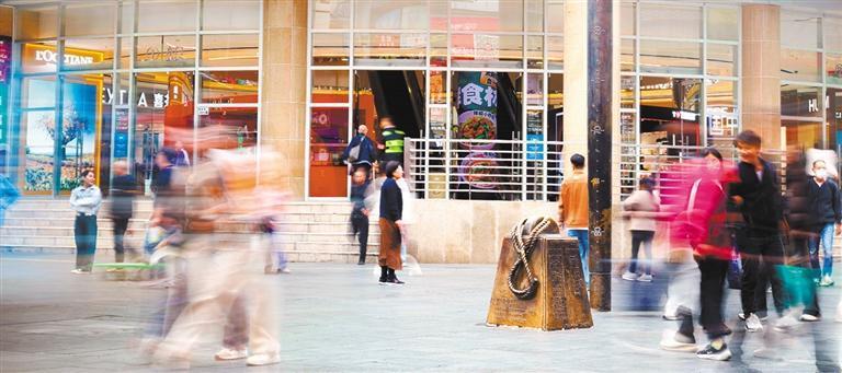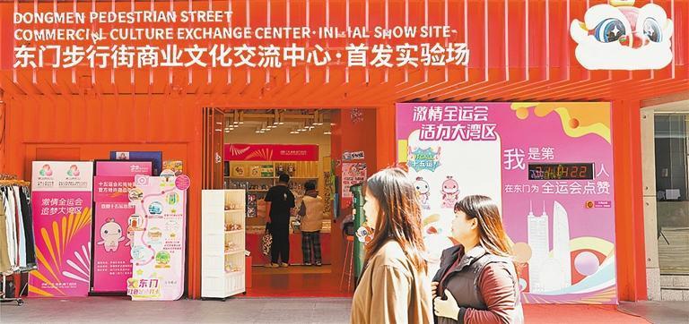 11月21日,游客在東門步行街商業(yè)文化交流中心選購(gòu)文創(chuàng)產(chǎn)品。該中心是品牌首發(fā)、首展的交流平臺(tái),定期聯(lián)合新進(jìn)品牌舉行聯(lián)展和快閃活動(dòng)。