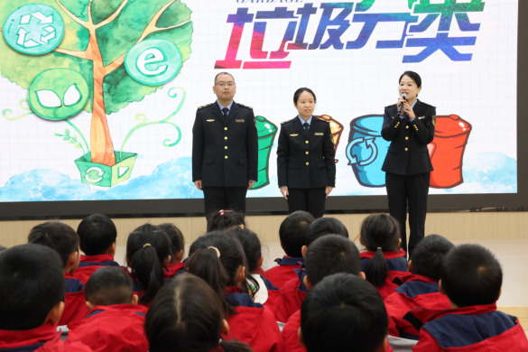 “香蕉皮要丟進綠色垃圾桶!”“不能摘幼兒園的小花!”近日,浙江省寧波市奉化區(qū)溪口鎮(zhèn)中心幼兒園的活動室里格外熱鬧,一場專為小朋友量身定制的環(huán)保普法活動正在這里開展。奉化區(qū)溪口鎮(zhèn)綜合行政執(zhí)法隊的隊員們化身“普法老師”,用孩子們聽得懂、喜歡玩的方式,把“垃圾分類、護綠愛綠”的法治種子種進了童心。