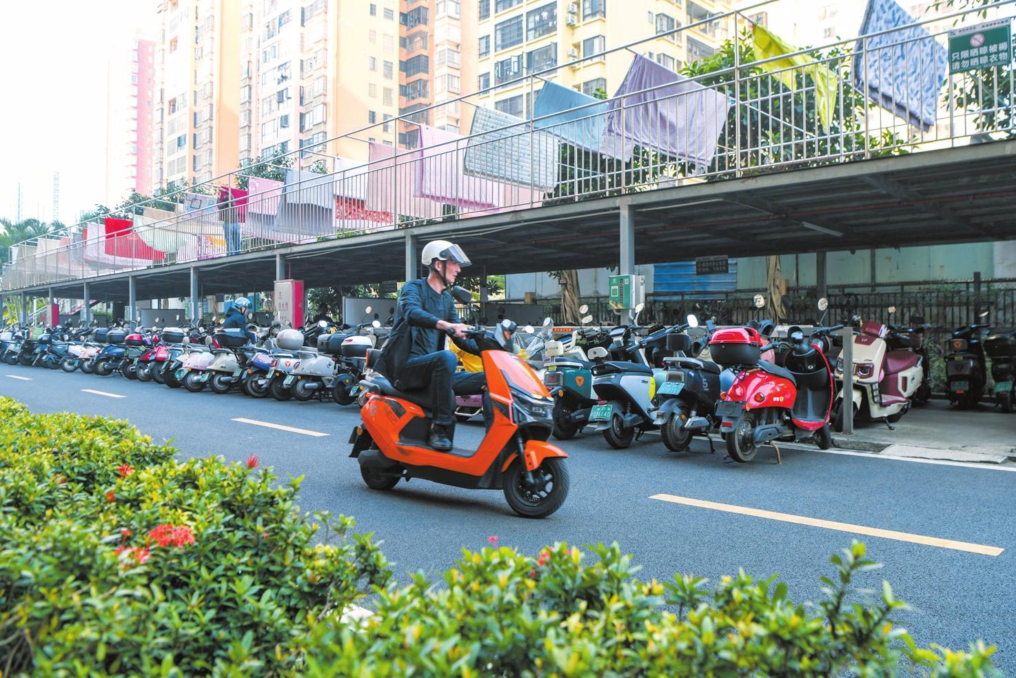 在瓊山區(qū)佳元·椰風(fēng)水韻小區(qū),物業(yè)部門為業(yè)主設(shè)置了下層停放電動(dòng)自行車上層晾曬的立體車棚。記者 蘇弼坤 攝
