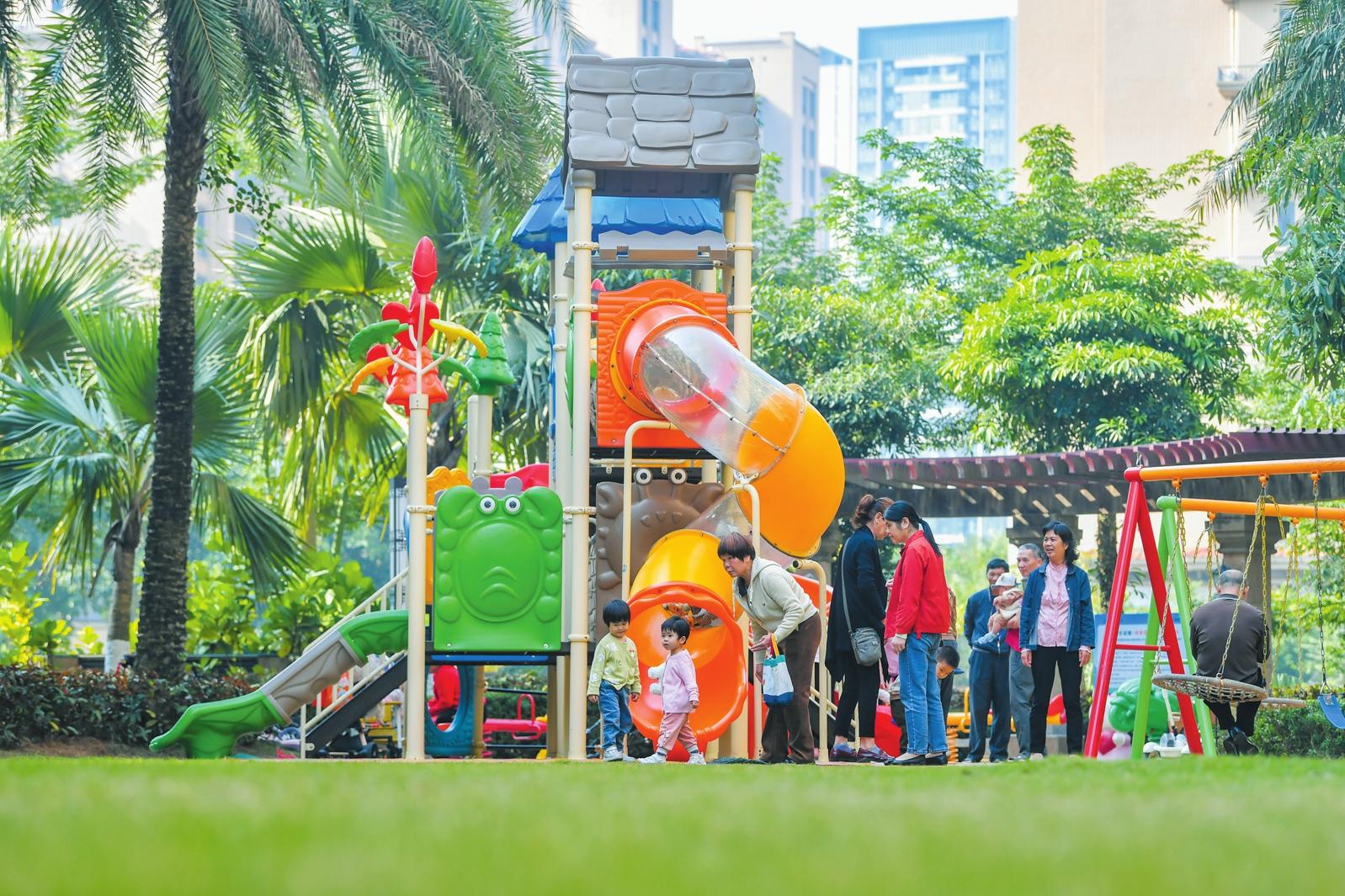 “注意腳下重心,膝蓋再?gòu)澮稽c(diǎn)!”2025年12月13日下午,在瓊山區(qū)佳元·椰風(fēng)水韻小區(qū)的空地上,孩子們?cè)诰毩?xí)輪滑;一旁的兒童游樂(lè)區(qū),老人們帶著孫輩游玩,歡笑聲不斷。這樣的幸福場(chǎng)景,已經(jīng)成為小區(qū)的日常。