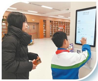 雄安圖書(shū)館內(nèi),小學(xué)生通過(guò)智能書(shū)柜檢索圖書(shū)。人民網(wǎng)記者 孫博洋攝