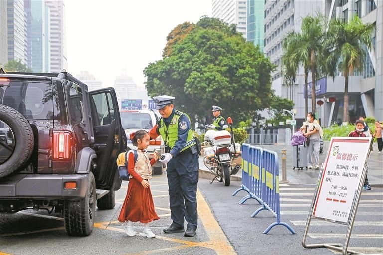 3月2日,2026年春季新學(xué)期開學(xué)首日恰逢周一早高峰,通勤與送學(xué)車流“雙疊加”,學(xué)校周邊道路交通壓力增大。為守護(hù)學(xué)生安全入校、保障周邊交通秩序順暢,深圳交警全面啟動新學(xué)期“護(hù)學(xué)”行動,以“地面疏導(dǎo)+空中巡查”立體化管理模式,加強(qiáng)警力值守、無人機(jī)護(hù)航、現(xiàn)場疏導(dǎo)、安全勸導(dǎo),多措并舉守護(hù)新學(xué)期校園交通安全。(深圳特區(qū)報記者 解樹森 賴?yán)?攝影報道)