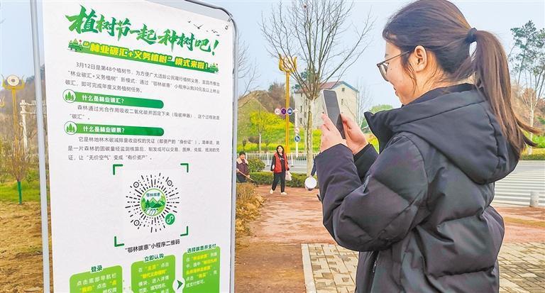 3月10日,湖北省宜昌市秭歸縣市民線上購買林業(yè)碳票。當?shù)赝瞥觥傲謽I(yè)碳匯+義務植樹”模式,讓市民實現(xiàn)手機“種碳”。周仕偉攝(中經視覺)