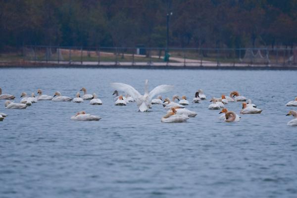 天鵝的持續(xù)到訪,已成為當(dāng)?shù)厝罕娮钇诖摹澳甓戎s”?!?021年之前也曾見過天鵝,但多為三兩只,當(dāng)時誤以為是家養(yǎng)禽類?!背砉珗@鍛煉的市民張先生感慨。家住公園附近的盧先生補充說:“此次天鵝凌晨5點多飛抵,老伴兒聽到天鵝的叫聲,便知道它們來了,我們期盼已久。”據(jù)了解,除白天鵝外,赤麻鴨、綠頭鴨、鳳頭??等國家二級保護動物也常在此棲息,成為當(dāng)?shù)厣锒鄻有员Wo的生動寫照。