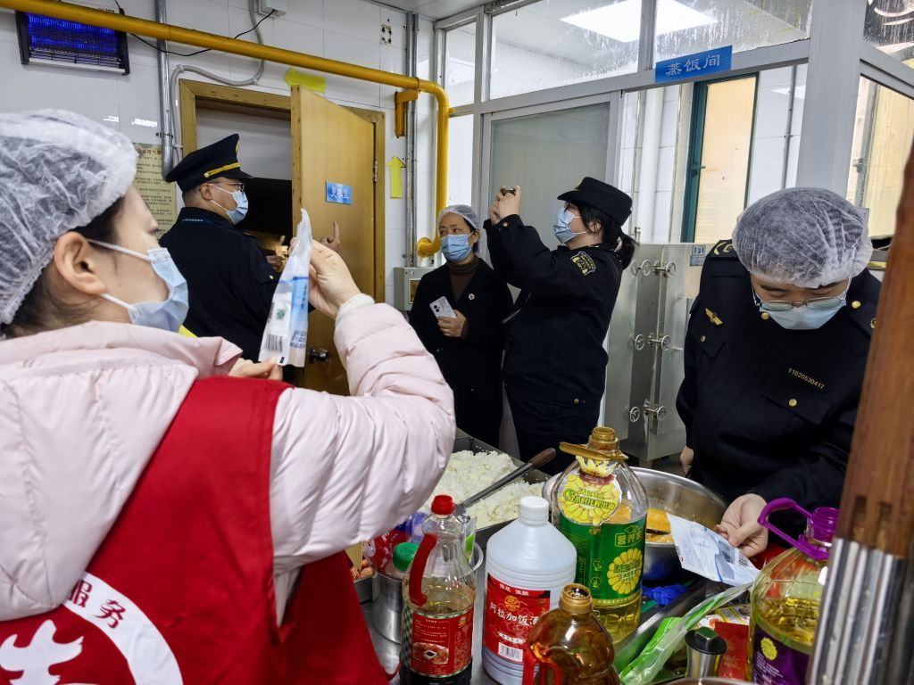 聯(lián)合執(zhí)法隊伍檢查校園食堂食品安全情況