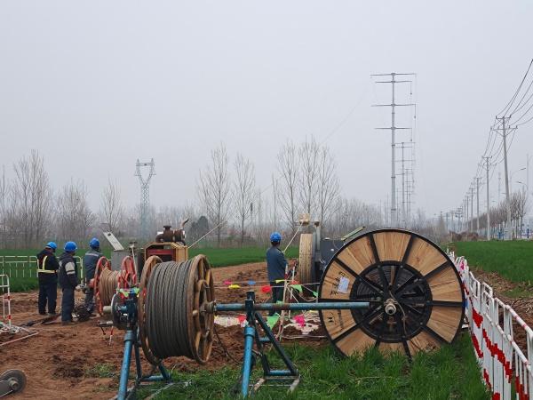 3月23日,在河南省漯河市平漯周高鐵漯河西牽引站220千伏外部供電工程現(xiàn)場(chǎng),國(guó)網(wǎng)漯河供電公司施工人員正在進(jìn)行220千伏Ⅰ尊英線地線更換光纜施工,現(xiàn)場(chǎng)緊線、掛線、附件安裝等工作有序進(jìn)行。與此同時(shí),平漯周高鐵孟寨牽引站220千伏外部供電工程(喬董還建)也正在進(jìn)行N29-N31組塔施工。
