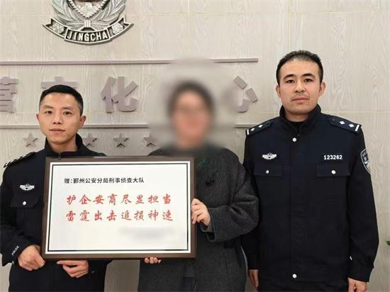 事后,該企業(yè)向警方送來(lái)感謝信和寫有“護(hù)企安商盡顯擔(dān)當(dāng),雷霆出擊追損神速”字樣的牌匾,對(duì)公安機(jī)關(guān)快速破案為企業(yè)挽回?fù)p失表示感謝。