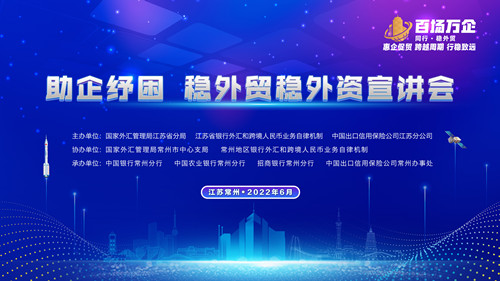 為貫徹全國(guó)穩(wěn)住經(jīng)濟(jì)大盤電視電話會(huì)議精神,落實(shí)《國(guó)務(wù)院辦公廳關(guān)于推動(dòng)外貿(mào)保穩(wěn)提質(zhì)的意見》的政策部署,由國(guó)家外匯管理局江蘇省分局(以下簡(jiǎn)稱“江蘇省外匯局”)、江蘇省銀行外匯和跨境人民幣業(yè)務(wù)自律機(jī)制(以下簡(jiǎn)稱“江蘇自律機(jī)制”)、中國(guó)出口信用保險(xiǎn)公司江蘇分公司主辦的“助企紓困,穩(wěn)外貿(mào)穩(wěn)外資”宣講活動(dòng)于6月23日在常州舉辦,該場(chǎng)宣講活動(dòng)由國(guó)家外匯管理局常州市中心支局協(xié)辦、中國(guó)銀行江蘇省分行(以下簡(jiǎn)稱“江蘇中行”)承辦,近百名客戶現(xiàn)場(chǎng)參會(huì)。