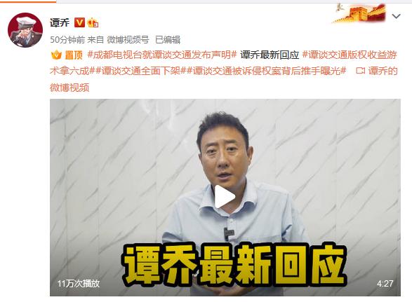 據(jù)上游新聞11日?qǐng)?bào)道,成都廣播電視臺(tái)版權(quán)聲明顯示,成都廣播電視臺(tái)都市生活頻道(CDTV-3)為《譚談交通》所屬的《平安成都》和《紅綠燈》欄目的制作單位,“本單位擁有《平安成都》欄目、《紅綠燈》欄目以及《譚談交通》板塊的全部著作權(quán),若上述欄目出現(xiàn)任何版權(quán)問(wèn)題,由本單位全權(quán)負(fù)責(zé)”。
