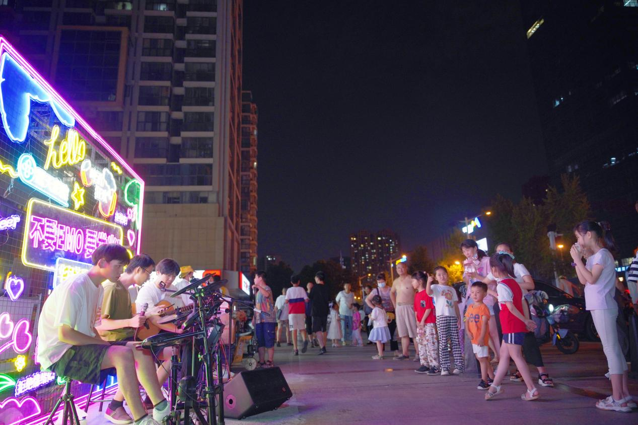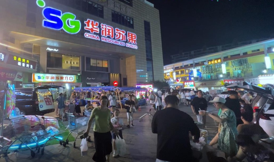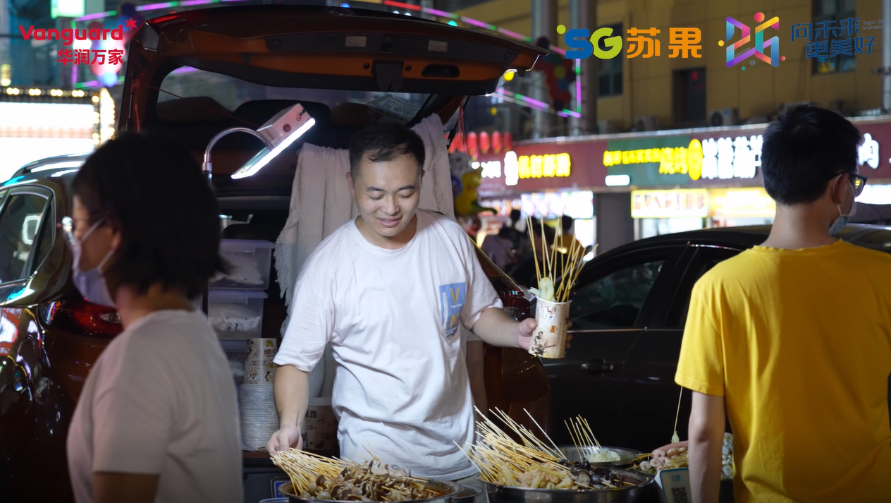 近日,夜幕降臨后的華潤蘇果天元東路店,顯得格外熱鬧。廣場上小吃攤位、后備箱攤位、套圈、扎氣球、歌手駐唱等項目吸引了不少消費(fèi)者駐足?,F(xiàn)場售賣的章魚小丸子、辣炒年糕、水果撈、榴蓮、烤香腸、涼粉、涼皮、啤酒、鐵板魷魚、小龍蝦等各類美食,得到了不少“吃貨”的好評?,F(xiàn)場播放的露天動畫電影,更是深受小朋友們的喜愛。此外,該門店還邀請了知名樂隊來到現(xiàn)場駐唱,并在網(wǎng)絡(luò)平臺直播?!鞍l(fā)光夜市”濃濃的煙火氣息,引來不少直播觀眾打CALL。