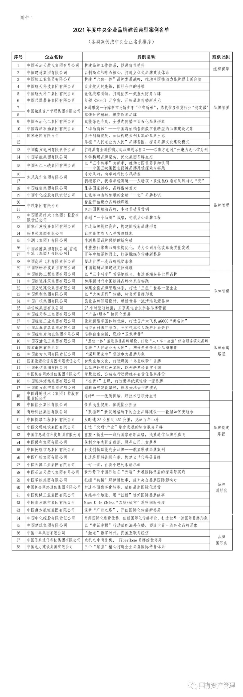 為深入貫徹習近平總書記關(guān)于品牌建設的重要指示精神,落實黨中央、國務院關(guān)于加強品牌建設的部署要求,指導推動中央企業(yè)講好品牌故事,不斷提高品牌建設工作水平,國資委社會責任局于2021年11月組織開展了2021年度國有企業(yè)品牌建設實踐案例和品牌故事征集工作,中央企業(yè)和地方國資國企積極組織、踴躍參與,共報送了492個品牌建設實踐案例、634個品牌故事作品。經(jīng)評審,最終遴選出具有良好示范效應和學習借鑒意義的100個典型案例和100個優(yōu)秀品牌故事(詳見附件)。