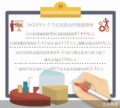 “截至8月1日,北京今年合計(jì)新增減稅降費(fèi)及退稅緩稅緩費(fèi)1400億元;社保緩繳政策惠及3.4萬(wàn)家企業(yè)約115萬(wàn)人,緩繳金額達(dá)到60億元;國(guó)有房屋租金減免政策惠及6.3萬(wàn)家小微企業(yè)及個(gè)體工商戶(hù),減免金額近100億元;“融資紓困直通車(chē)”已向801家企業(yè)發(fā)放融資款62.5億元?!贝鞣f介紹道。