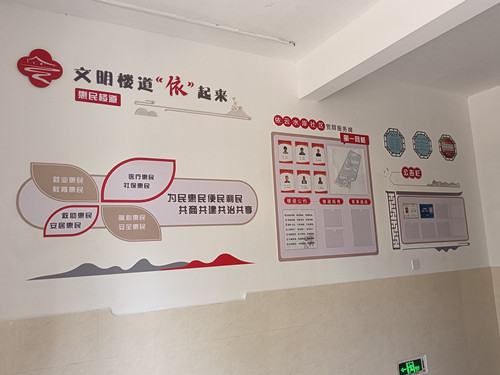 通過環(huán)境整治、優(yōu)化提升,樓道面貌發(fā)生了很大的變化,文明樓道以正面宣傳引導、展示樓組風貌、治理格局為主線,著重宣傳社會主義核心價值觀和文明公約內(nèi)容,并結(jié)合黨建文化、志愿服務、社區(qū)治理、風俗風情等,以彰顯依云水岸社區(qū)微治理建設水平。