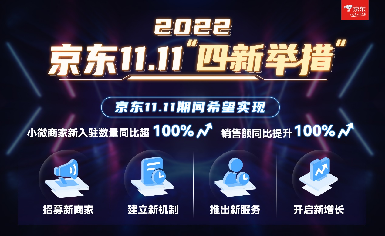 9月7日,2022年京東11.11商家大會通過直播形式召開。大會上,京東正式發(fā)布了“四新舉措”,即在今年京東11.11期間,通過“招募新商家、建立新機制、推出新服務、開啟新增長”,在充滿不確定的環(huán)境下,幫助更多中小微商家在京東開店,多措并舉為中小微商家?guī)砜沙掷m(xù)增長,帶動產(chǎn)業(yè)鏈上下游超千萬人就業(yè)。
