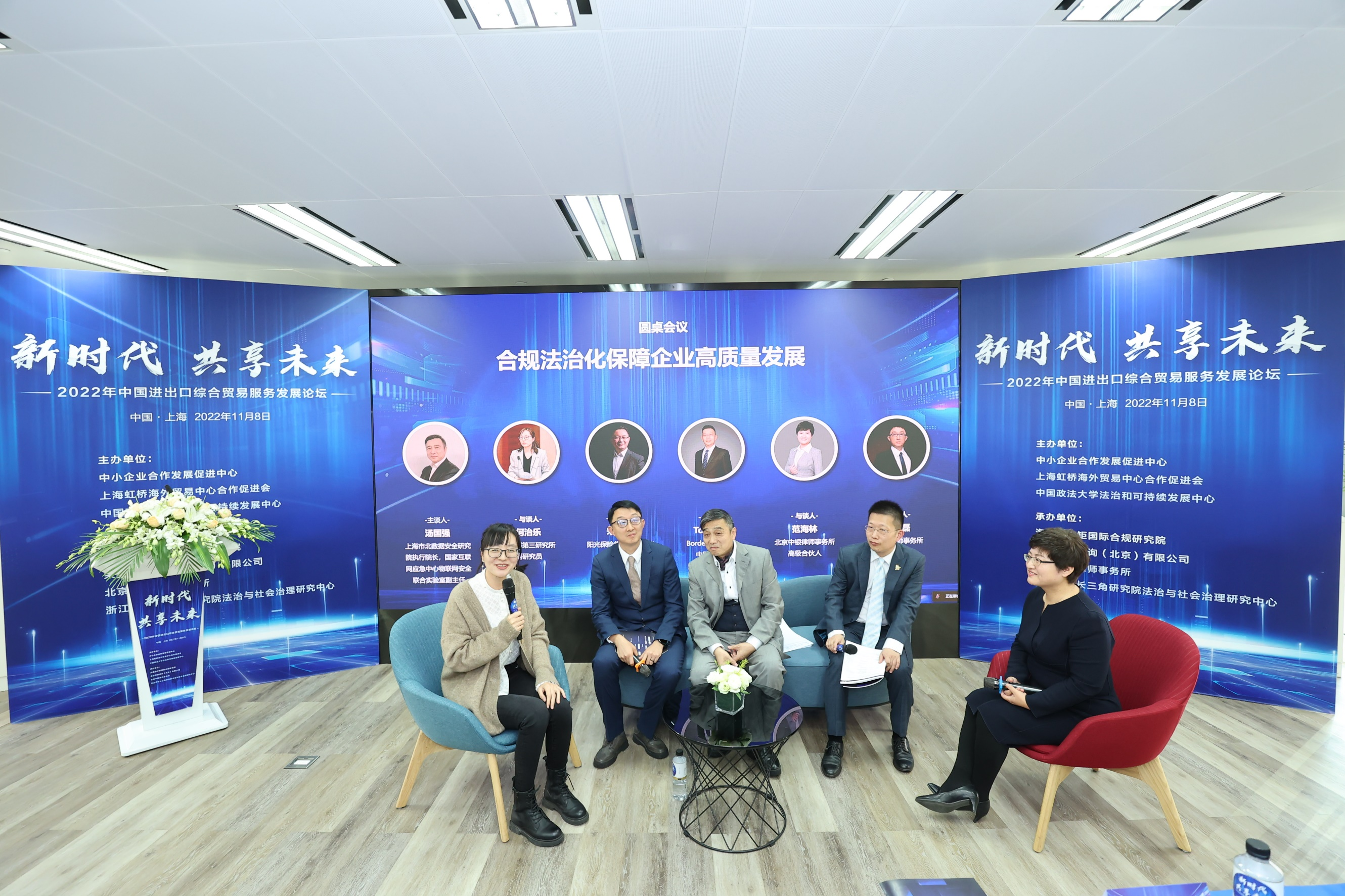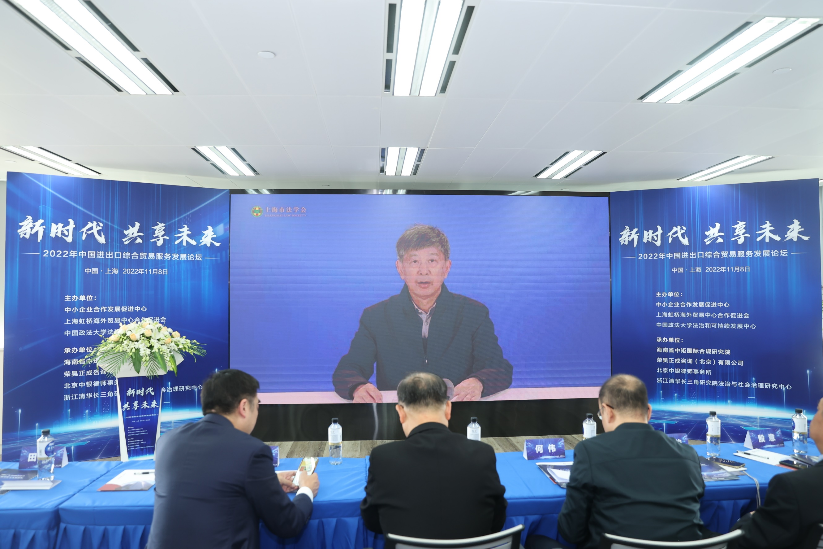 2022年11月8日,由中小企業(yè)合作發(fā)展促進中心、上海虹橋海外貿(mào)易中心合作促進會、中國政法大學(xué)法治與可持續(xù)發(fā)展中心共同主辦的“2022年中國進出口綜合貿(mào)易服務(wù)發(fā)展論壇”在上海虹橋海外貿(mào)易中心隆重舉行,政府領(lǐng)導(dǎo)、專家學(xué)者、企業(yè)代表共同探討綜合貿(mào)易服務(wù)變化及貿(mào)易合規(guī)挑戰(zhàn)。