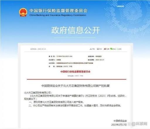 中國銀保監(jiān)會關(guān)于北大方正集團(tuán)財務(wù)有限公司破產(chǎn)的批復(fù)