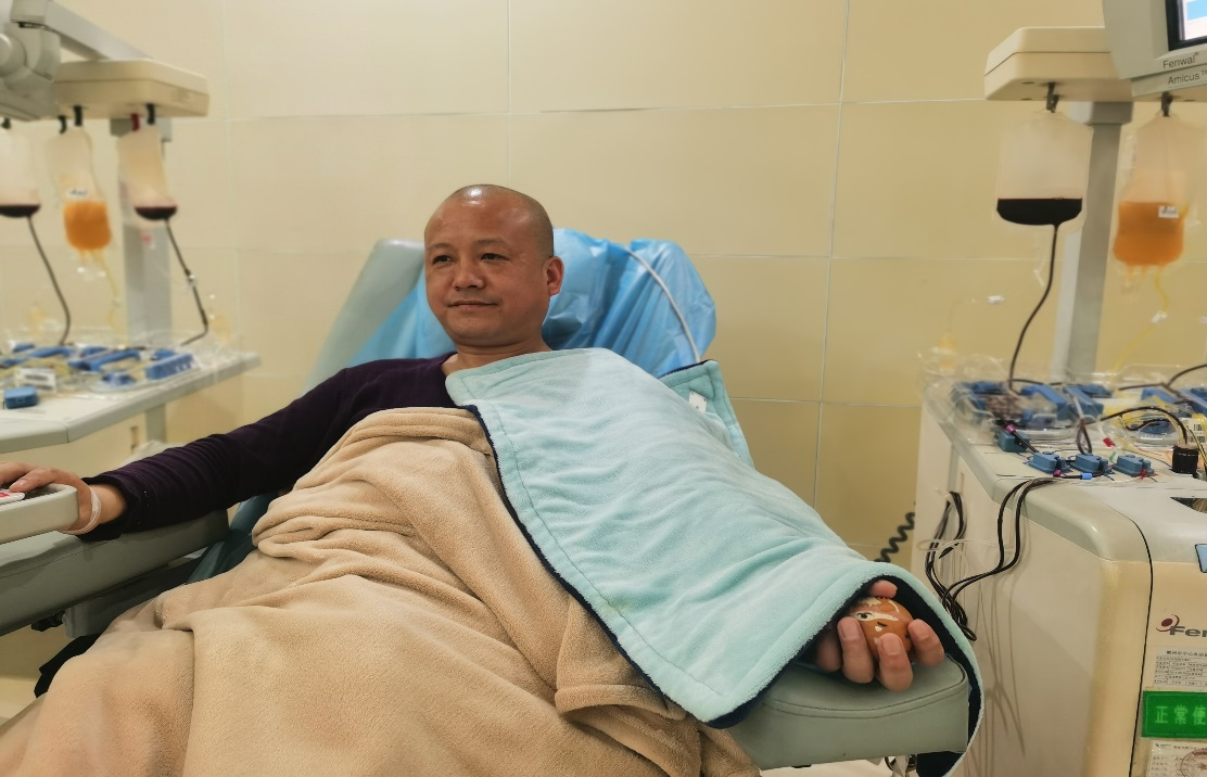 熟悉歐華威的人知道,在他的左臂有幾個(gè)不小的針孔印,那是采血針留下的印記。自從2007年,歐華威無意間看見急需血液的倡議書后,他便開始了無償獻(xiàn)血之路。十多年來他從未間斷過,從公司組織獻(xiàn)血到血站的隨叫隨到,從最初的200ml到現(xiàn)在的400ml,從最初的獻(xiàn)全血到現(xiàn)在為特殊需求的病人獻(xiàn)血小板,歐華威每次都毫不猶豫的挽起袖子。由于工作忙,歐華威常利用午飯后和休假時(shí)間趕到血站奉獻(xiàn)愛心,獻(xiàn)完血后,馬上回到自己的工作崗位。“只要條件符合,他每次都要求捐獻(xiàn)2個(gè)治療量。他總說工作特別忙,能來一次不容易,能多獻(xiàn)就能多救人?!?/p>