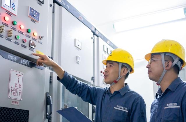 深圳寶安供電局工作人員在欣旺達(dá)產(chǎn)業(yè)園配電房檢查設(shè)備運(yùn)行情況。主辦方供圖