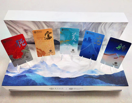 在外觀設(shè)計上,“強富美高新”硬錢包簡潔大方、主題突出,每套硬錢包由五張標準卡片式硬錢包組成,分別取名“強、富、美、高、新”,體現(xiàn)了新時代江蘇發(fā)展的總目標定位。其中,“強”主題硬錢包采用中國風設(shè)計,體現(xiàn)江蘇經(jīng)濟高質(zhì)量發(fā)展,氣勢如虹;“富”主題硬錢包采用南京云錦作為底紋,在花叢中呈現(xiàn)城市樣貌,體現(xiàn)人民群眾獲得感、幸福感、安全感不斷增強;“美”主題硬錢包采用典雅的中國水彩風設(shè)計,綠色潑墨漸變體現(xiàn)江蘇綠水青山的生態(tài)環(huán)境建設(shè)成果,融入了省會南京的玄武門、銀杏葉、吉祥飛鳥等元素,寓意江南魚米之鄉(xiāng)的秀美風光;“高”主題硬錢包采用深藍色作為設(shè)計主色,鋼筆的筆尖與文化和文明相呼應(yīng),體現(xiàn)江蘇的社會文化程度高;“新”主題硬錢包采用新中式風格,以江南建筑輪廓融入更多現(xiàn)代的審美,寓意堅持把科技創(chuàng)新作為經(jīng)濟社會發(fā)展的第一動力。
