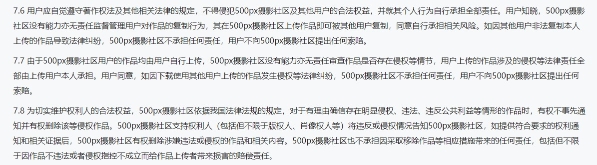 記者發(fā)現(xiàn),在視覺中國的個(gè)人供稿社區(qū)——500px攝影社區(qū)中,有這樣一條免責(zé)聲明:用戶的作品均由用戶自行上傳,500px攝影社區(qū)沒有能力亦無責(zé)任審查作品是否存在侵權(quán)等情節(jié),用戶上傳的作品涉及的侵權(quán)等法律責(zé)任全部由上傳用戶本人承擔(dān)。用戶同意,如因下載使用其他用戶上傳的作品發(fā)生侵權(quán)等法律糾紛,500px攝影社區(qū)不承擔(dān)任何責(zé)任,用戶不向500px攝影社區(qū)提出任何索賠。