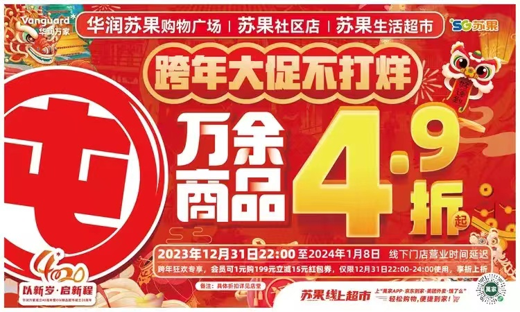 為拉動(dòng)節(jié)日消費(fèi),做旺元旦市場(chǎng),蘇果超市采取多重舉措集中發(fā)力,于2023年12月31日啟動(dòng)“龍年囤好物,省新在萬(wàn)家”萬(wàn)余商品4.9折起等系列促消費(fèi)活動(dòng),有效拉動(dòng)元旦消費(fèi)。據(jù)統(tǒng)計(jì),自活動(dòng)啟動(dòng)之日至1月4日,累計(jì)已有數(shù)百萬(wàn)人走進(jìn)蘇果各業(yè)態(tài)門店“買買買”,實(shí)現(xiàn)2024新年開門紅。