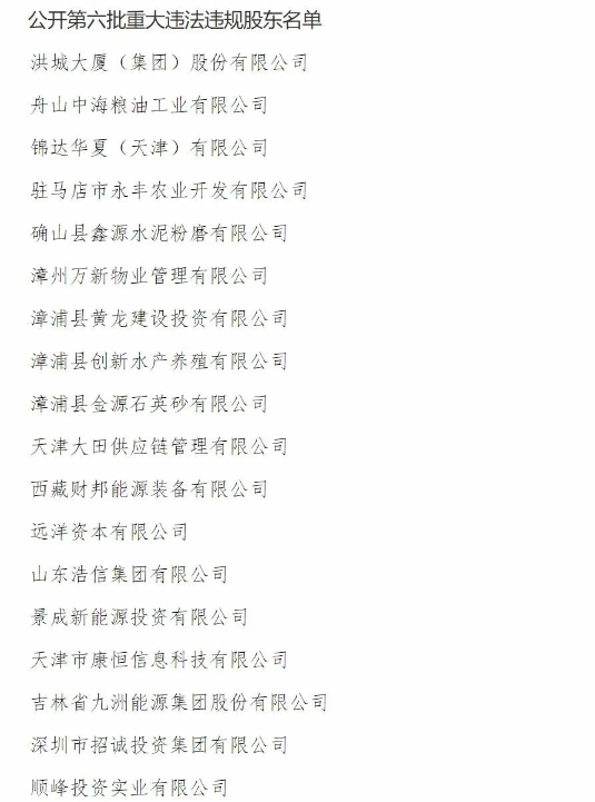 6月14日,國(guó)家金融監(jiān)督管理總局向社會(huì)公開第六批共18家重大違法違規(guī)股東。