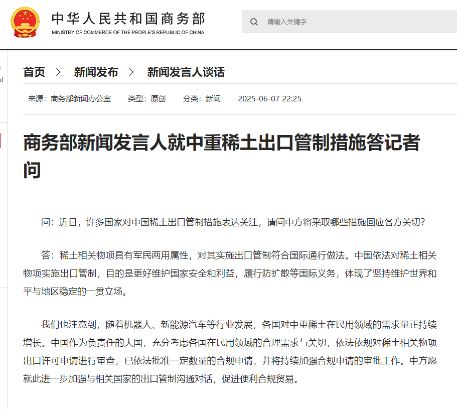 商務(wù)部就中重稀土出口管制答記者問(wèn)